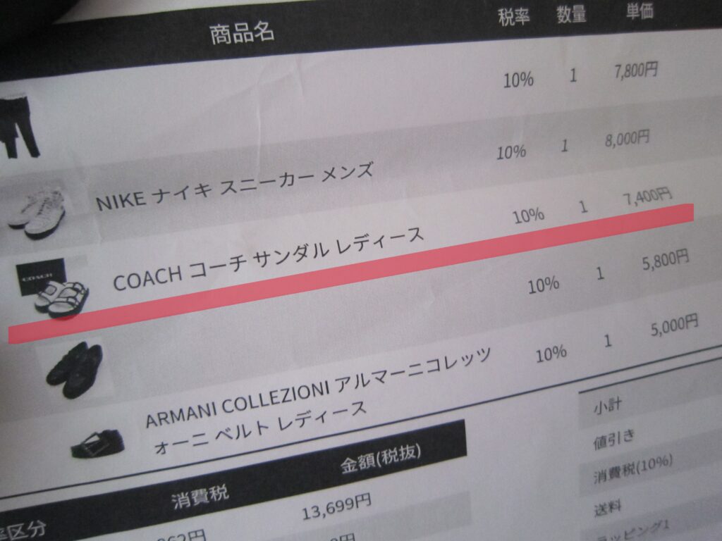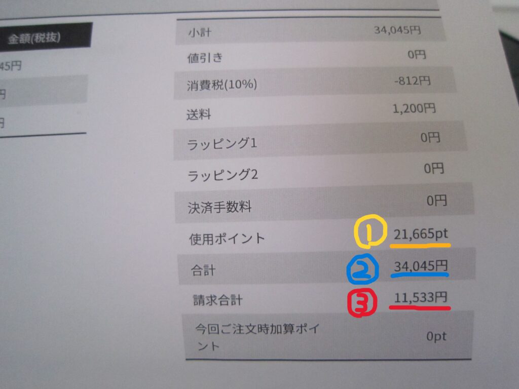 明細の個別項目は値引き前表示となりますので、今回のケースでは約2000円で購入できたことになります。